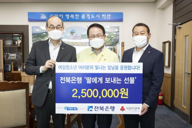 ±âŹ½Ä¿¡´Â Á¤ÇåÀ² ½ÃÀå°ú ÀüºÏÀºÇà À̼º¶õ ºÎÇàÀå, °íÂù¹è ÀÍ»ê±ÝÀ¶¼¾ÅÍÀå, À̽ÂÈÆ ÀÍ»ê½Ãû¿µ¾÷Á¡Àå µîÀÌ Âü¼®ÇßÀ¸¸ç, ±âŹµÈ ¹°Ç°Àº º¸°ÇÀ§»ý¿ëǰ ±¸ÀÔ¿¡ ºÎ´ãÀÌ °¡ÁßµÈ ¿©¼ºÃ»¼Ò³â 100¸í¿¡°Ô Àü´ÞµÉ ¿¹Á¤ÀÌ´Ù. ÀüºÏÀºÇà¿¡¼ ½Ç½ÃÇϰí ÀÖ´Â ¡®2021 µþ¿¡°Ô º¸³»´Â ¼±¹°¡¯ »ç¾÷Àº Àú¼ÒµæÃþ ¹× º¹Áö»ç°¢Áö´ë ¿©¼ºÃ»¼Ò³âµé¿¡°Ô º¸°ÇÀ§»ý¿ëǰÀ» Áö¿øÇÔÀ¸·Î½á û¼Ò³âµéÀÇ °Ç°ÇÑ ¼ºÀåÀ» µ½°í »çȸÀû À̽´ ÇØ°á ¹× ±â¾÷ÀÇ »çȸÀû Ã¥ÀÓÀ» ½ÇõÇϱâ À§ÇØ ÁøÇàµÇ´Â »ç¾÷ÀÌ´Ù.