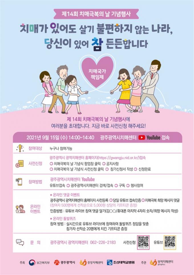 ÀÚ¼¼ÇÑ »çÇ×Àº ±¤Áֽà ±¤¿ªÄ¡¸Å¼¾ÅÍ È¨ÆäÀÌÁö °øÁö»çÇ× ¡®2021 ±¤ÁÖ±¤¿ª½Ã Ä¡¸Å±Øº¹ÀÇ ³¯ ±â³äÇà»ç ¾È³» ¹× »çÀü½Åû¡¯À» Âü°íÇÏ¸é µÈ´Ù. ±¤Áֽô ¿Â¶óÀÎ Çà»ç¿Í ´õºÒ¾î Ä¡¸Å±Øº¹ ÁÖ°£À» ¸Â¾Æ Ä¡¸Å±Øº¹¿¡ ´ëÇÑ Èñ¸ÁÀ» ÀüÆÄÇϱâ À§ÇØ ¡®Ä¡¸Å±Øº¹ ½Ã¹Î°ø¸ðÀü¡¯µµ ÁøÇàÇß´Ù.