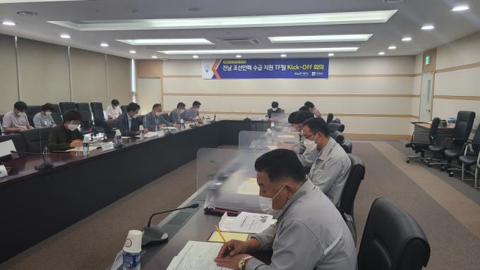 TF´Â ÁÖ¼ø¼± Àü³²µµ Àü·«»ê¾÷±¹ÀåÀ» ´ÜÀåÀ¸·Î Çö´ë»ïÈ£Áß°ø¾÷, ´ëÇÑÁ¶¼± µî 5°³ Á¶¼±±â¾÷°ú Çѱ¹Á¶¼±ÇؾçÇ÷£Æ®Çùȸ, ±¤ÁÖ ÃâÀÔ±¹¿Ü±¹Àλ繫¼Ò, Çѱ¹»ê¾÷´ÜÁö°ø´Ü µî 5°³ À¯°ü±â°üÀ» ºñ·ÔÇØ °ü·Ã ½Ã±ºÀÌ Âü¿©ÇÑ´Ù.