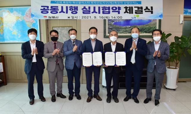 À̳¯ Çù¾à½ÄÀº ±èÁ¦½Ã¿Í LH°¡ Çù·Âü°è ±¸Ãà ¹× °øµ¿½ÃÇàÀ» ¾à¼ÓÇÏ´Â Àå(íÞ)À¸·Î½á ±èÁ¦½Ã Áö¿ª¹ßÀüÀ» ¸ñÀûÀ¸·Î ¹ÚÁØ¹è ±èÁ¦½ÃÀå, ±è½Âö LH ÀüºÏÁö¿ªº»ºÎÀåÀÌ Âü¼®ÇÏ¿´´Ù.