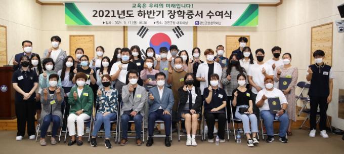 ¡Ø »çÁø¼³¸í : Áö³ 17ÀÏ °Áø±º¹ÎÀåÇÐÀç´Ü À̽¿Á ÀÌ»çÀå, ÀåÇлý°ú Çкθ𰡠ÀåÇÐÁõ¼ ¼ö¿©½ÄÀ» ¸¶Ä¡°í ±â³ä ÃÔ¿µÀ» Çϰí ÀÖ´Ù.