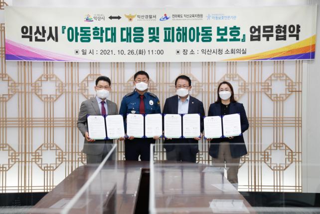 ÀÍ»ê½Ã´Â 26ÀÏ ½Ãû ¼ÒȸÀǽǿ¡¼ Á¤ÇåÀ² ÀÍ»ê½ÃÀå°ú ¼Û½ÂÇö ÀÍ»ê°æÂû¼Àå, À̼ö°æ Àͻ걳À°Áö¿øÃ» ±³À°Àå, ÃÖÀºÈñ ÀÍ»ê½Ã¾Æµ¿º¸È£Àü¹®±â°üÀåÀÌ Âü¼®ÇÑ °¡¿îµ¥ ¾Æµ¿ÇÐ´ë ´ëÀÀ ¹× ÇÇÇØ¾Æµ¿ º¸È£¸¦ À§ÇÑ °øµ¿´ëÀÀ ¾÷¹«Çù¾àÀ» ü°áÇß´Ù°í ¹àÇû´Ù. À̹ø Çù¾àÀ» ÅëÇØ °¢ ±â°üÀº ÇдëÇÇÇØ(ÀǽÉ)¾Æµ¿ÀÇ Á¶±â¹ß°ß, ½Å¼Ó ´ëÀÀ ¹× Á¤º¸°øÀ¯ ÇùÁ¶¿Í ¾Æµ¿ÇÐ´ë ¿¹¹æ»ç¾÷ µ¿Âü µî À¯±âÀû °øµ¿ ´ëÀÀ ü°è¸¦ ±¸ÃàÇØ ¾Æµ¿º¸È£ °ø°ø ¾ÈÀü¸ÁÀ» ´õ¿í °ÈÇÑ´Ù.