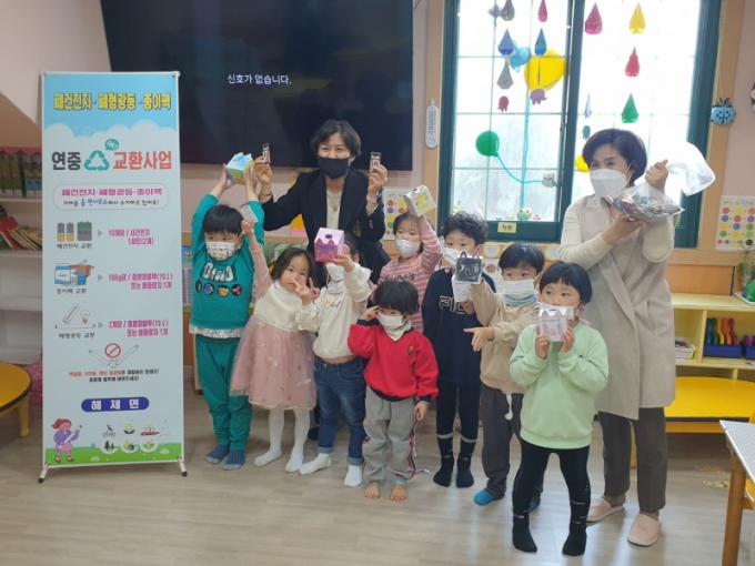 ÇØÁ¦¸éÀº Áö³ 9¿ù ¡®Æó°ÇÀüÁö ¼ö°ÅÅë ¸¸µé±â ŰƮ¡¯¸¦ °ü³» 2°³¼Ò ¾î¸°ÀÌÁý¿¡ 50°³¸¦ ¹èÆ÷Çß°í, ÀÌ¿¡ ¾ÆÀ̵éÀÌ Á÷Á¢ ¸¸µç ¼ö°ÅÅë¿¡ °¢ °¡Á¤¿¡¼ ¹èÃâµÈ Æó°ÇÀüÁö¸¦ ¸ð¾Æ »õ °ÇÀüÁö·Î ±³È¯ÇÏ´Â Çà»ç¿¡ Âü¿©ÇÏ´Â ½Ã°£À» °¡Á³´Ù.
