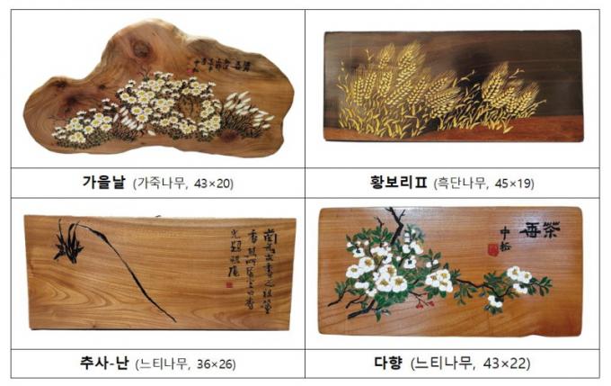 ÁÖ¿ä Àü½Ã ÀÛǰÀº Ȳº¸¸®, ±¸ÀýÃÊ, ³ìÂ÷²É, »çÄ£(ÞÖöÑ), ºÎºÎ µîÀÌ´Ù. Ȳº¸¸®´Â °Ë°í ´Ü´ÜÇÑ Èæ´Ü³ª¹«¿¡ ±Ý°¡·ç¸¦ Ȱ¿ëÇØ Ȳ±Ý µéÆÇÀ» »ç½ÇÀûÀ¸·Î Ç¥ÇöÇß´Ù. ±¸ÀýÃÊ, ³ìÂ÷²ÉÀº ¿ì¸® °íÀ¯ÀÇ ¿À¹æ»öÀ» »ç¿ëÇØ Ȱ¢ÀÇ ¾Æ¸§´Ù¿òÀ» º¸¿©ÁØ´Ù.