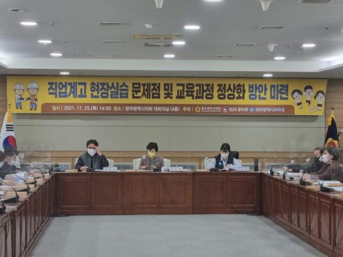 ÆÐ³Î·Î Âü¿©ÇÑ ±è·ùÇÑ Àü±³Á¶ ±¤ÁÖÁ÷¾÷±³À°À§¿øÀå°ú À̽ÂÈñ ±¤ÁÖû¼Ò³â³ëµ¿ÀαǼ¾ÅÍÀåÀº ±³À°ÀÌ ¾Æ´Ñ ÀúÀӱݳ뵿·ÂÀ¸·Î Ȱ¿ëµÇ´Â ÇöÀåÇнÀ Á¦µµ´Â ÆóÁöÇÏ¿©¾ßÇÑ´Ù´Â ÀÔÀåÀ» ¹ßÇ¥ÇÏ¿´À¸¸ç, ¹ÚÀºÁÖ ±¤ÁÖ¿©ÀÚ»ó¾÷°íµîÇб³ ±³»ç´Â »ó¾÷°è°í ÇлýµéÀº ´ëºÎºÐ ½Ç½ÀÀ» ÅëÇØ Ãë¾÷À¸·Î À̾îÁö´Â ±¸Á¶¶ó¸ç ¸ðµç ÇöÀå½Ç½ÀÀ» ÀϰýÀûÀ¸·Î ±ÔÁ¤Áþ´Â °Í¿¡ ¹Ý´ëÇÑ´Ù°í ÇÏ¿´´Ù.