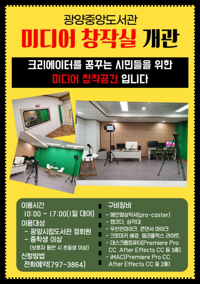 ¹Ìµð¾îâÀÛ½ÇÀº 12¿ù ½Ã¹ü ¿î¿µÀ» °ÅÃÄ ³»³â 1¿ùºÎÅÍ Àåºñ ÀÌ¿ë ±³À°°ú û¼Ò³â ÄÜÅÙÃ÷ Á¦ÀÛ Áö¿ø µî ¿©·¯ ¿¬°è ÇÁ·Î±×·¥°ú ÇÔ²² Á¤»ó ¿î¿µµÉ ¿¹Á¤À̸ç, ÀÌ¿ëÀº ±¤¾çÁß¾Óµµ¼°ü(¢Ï061-797-3864)À¸·Î ¹®ÀÇÇϸé ÀÚ¼¼È÷ ¾Ë ¼ö ÀÖ´Ù.