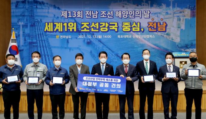 Àü³²µµ´Â 13ÀÏ ¸ñÆ÷´ëÇб³ ½ÅÇØ¾ç»ê´ÜÄ·ÆÛ½º¿¡¼ µµ³» Á¶¼±․ÇØ¾ç±â¾÷ ´ëÇ¥ ¹× ³ëµ¿ÀÚ, À¯°ü±â°ü, ÁöÀÚü °ü°èÀÚ 70¿© ¸íÀÌ Âü¼®ÇÑ °¡¿îµ¥ ¡®Á¦13ȸ Àü³² Á¶¼±¡¤ÇؾçÀÎÀÇ ³¯¡¯À» °³ÃÖÇϰí, Á¶¼±Àη ºÎÁ· ÇØ¼Ò¸¦ À§ÇÑ ´ëÁ¤ºÎ °øµ¿°ÇÀǹ®À» äÅÃÇß´Ù.