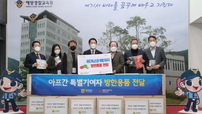 ¹æÇÑ¿ëǰ(¸ñµµ¸®, Àå°©)Àº ´ëÇÑÀû½ÊÀڻ縦 ÅëÇØ ¾î¸°ÀÌ 185¸í µî 78°¡±¸ 387¸í¿¡°Ô Àü´ÞµÆ´Ù. À̳¯ Àü´Þ½Ä¿¡´Â ±è¿µ·Ï Àü³²µµÁö»ç, À¯º¹·Ä ¾ÆÇÁ°£ Á¤ºÎÇÕµ¿Áö¿ø´Ü ÃѰý¹ÝÀå, ÇãÁ¤ ´ëÇÑÀû½ÊÀÚ»ç ±¤ÁÖÀü³²Áö»çȸÀåÀÌ Âü¼®Çß´Ù.