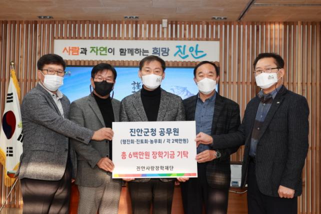 29ÀÏ Áø¾È±ºÃ» °ø¹«¿ø¸ðÀÓ ¡ãÇàÁøÈ¸(ÇàÁ¤Á÷ °ø¹«¿ø), ¡ãÁøÅäȸ(Åä¸ñÁ÷ °ø¹«¿ø), ¡ã³ó¿ìȸ(³ó¾÷Á÷°ø¹«¿ø)¿¡¼´Â °¢ 2¹é¸¸¿ø¾¿ ¸ðÀº ÈÄ¿ø±ÝÀ» Áø¾È»ç¶ûÀåÇÐÀç´Ü(ÀÌ»çÀå ÀüÃἺ)¿¡ Àü´ÞÇß´Ù.