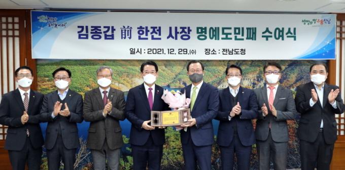 Àü³²µµ´Â 29ÀÏ µµÃ»¿¡¼ ±è¿µ·Ï Àü³²µµÁö»ç, À±ÀÇÁØ Çѱ¹¿¡³ÊÁö°ø´ë ÃÑÀå, ÀÌÇöºó Çѱ¹Àü·Â°ø»ç ºÎ»çÀå µîÀÌ Âü¼®ÇÑ °¡¿îµ¥ ±èÁ¾°© Àü ÇÑÀü »çÀå¿¡°Ô ¸í¿¹µµ¹ÎÆÐ¸¦ ¼ö¿©Çß´Ù.