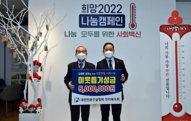 ´ëÇÑÀü¹®°Ç¼³Çùȸ ÀüºÏµµÈ¸ ÀÓ±ÙÈ« ȸÀåÀº ¡°ÇüÆíÀÌ ¾î·Á¿î °¡Á¤¿¡ Á¶±ÝÀ̳ª¸¶ µµ¿òÀÌ µÇ±æ ¹Ù¶ó´Â ¸¶À½À¸·Î ±âºÎÇÏ°Ô µÇ¾úÀ¸¸ç µµ¿òÀÌ ÇÊ¿äÇÑ ÀÌ¿ô¿¡°Ô Áö¼ÓÀûÀÎ °ü½ÉÀ» °¡Áö°í ÈÄ¿øÇϵµ·Ï Çϰڴ١±¶ó°í ¸»Çß´Ù.