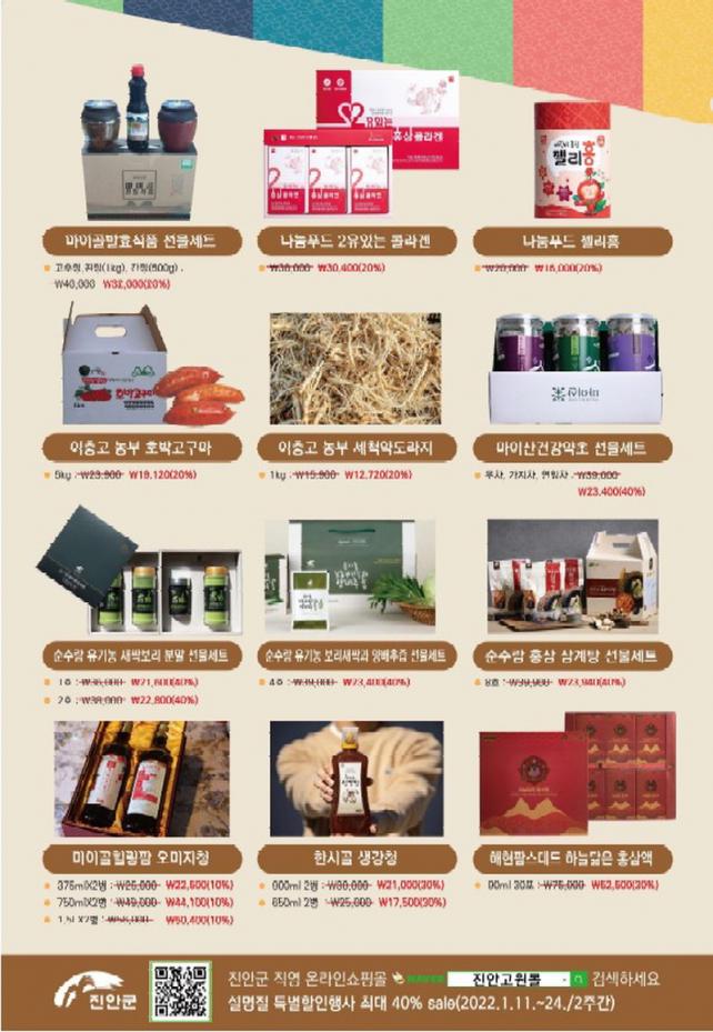 Áø¾È°í¿ø¸ô °ü°èÀÚ´Â ¡°Äڷγª19·Î Ä£ÀÎô°úÀÇ ¸¸³²ÀÌ ¾î·Á¿î ¸¸Å ºñ´ë¸éÀ¸·Î °¨»ç Àλ縦 ÀüÇÒ ¼ö ÀÖµµ·Ï ´Ù¾çÇÑ »óǰÀ» ÁغñÇÏ°í °£ÆíÇÏ°Ô ±¸¸ÅÇÒ ¼ö ÀÖµµ·Ï ¼¼Æ®»óǰ Áß½ÉÀ¸·Î À̺¥Æ®¸¦ ±¸¼ºÇß´Ù¡±¸ç ¡°Ã»Á¤ °í·©Áö Áø¾È°í¿ø¿¡¼ »ý»êÇÑ ¸íǰ ³óƯ»ê¹°·Î °í¸¶¿î À̵鿡°Ô µû¶æÇÑ ¸¶À½À» ÀüÇÏ½Ã±æ ¹Ù¶õ´Ù¡±°í ¹àÇû´Ù.