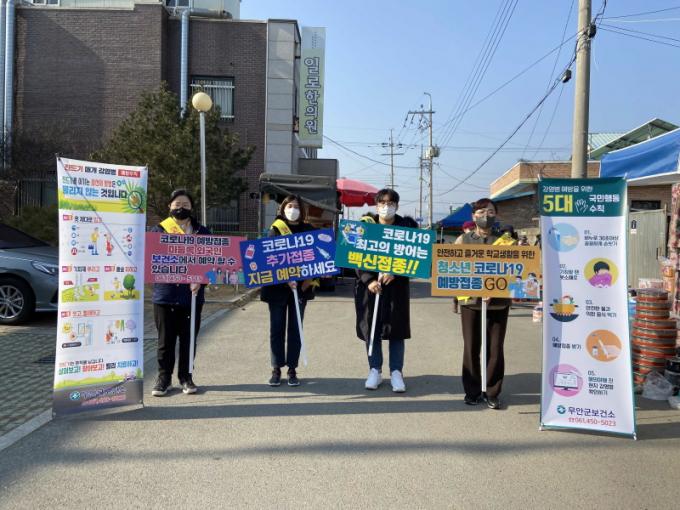 À̳¯ º¸°Ç¼Ò Á÷¿øµéÀº ¼ÒÇü Çö¼ö¸·, ÇÇÄÏ, ¾î±ú¶ì µîÀ» Ȱ¿ëÇØ ±º¹Îµé¿¡°Ô Äڷγª19 ¿¹¹æÁ¢Á¾ÀÇ Á߿伺°ú °¨¿°º´ ¿¹¹æ ¾ÈÀü¼öÄ¢, Äڷγª19 ¿¹¹æ Ãß°¡Á¢Á¾¿¡ ´ëÇØ ¾È³»Çß´Ù.