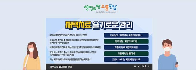 Àü³²Áö¿ª ÀçÅÃÄ¡·á Á¤º¸¸¦ ´ãÀº ¡®ÀçÅÃÄ¡·á ½½±â·Î¿î °ü¸®¡¯ ¹è³Ê´Â ÀÎÅÍ³Ý ÁÖ¼Òâ¿¡ ¡®https://www.jeonnam.go.kr/corona19Page.do¡¯¸¦ ÀÔ·ÂÇϰųª Äڷγª19 °ø½Ä ´©¸®Áý ù È¸é ¹× ¹è³Ê¸¦ ÅëÇØ Á¢¼ÓÇÒ ¼ö ÀÖ´Ù.