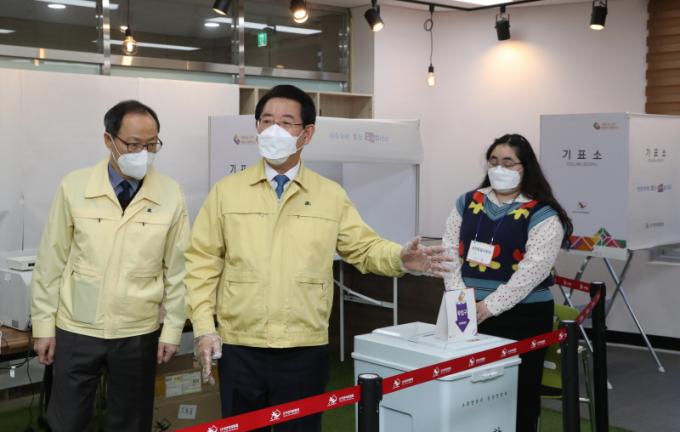 Àü³²Áö¿ª »çÀüÅõÇ¥¼Ò´Â ÃÑ 297°÷ÀÌ´Ù. ¿øÈ°ÇÑ »çÀüÅõÇ¥¸¦ À§ÇØ ¼±°Å°ü¸®À§¿øÈ¸ ÁÖ°ü ¾Æ·¡ 3ÀÏ ÅõÇ¥¿ëÁö ¹ß±Þ, º»ÀÎ ¿©ºÎ È®ÀÎ µî ÅõÇ¥ ÀýÂ÷ ¹× Äڷγª19 ¹æ¿ª »óȲ Á¡°ËÀ» À§ÇÑ ¸ðÀǽÃÇèÀ» ÁøÇàÇß´Ù.
