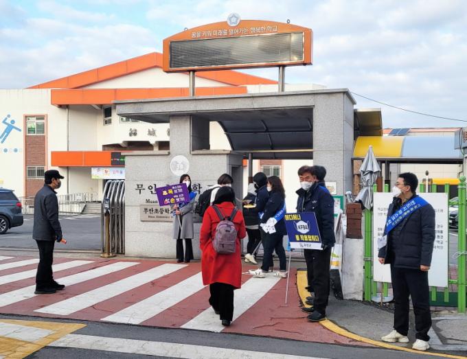 À̳¯ Ä·ÆäÀÎÀº 9½Ã¿Í 10½Ã ºÐ»êµî±³°¡ ÀÌ·ïÁø ¹«¾ÈÃʵîÇб³ ¾Õ¿¡¼ ½Ç½ÃµÆÀ¸¸ç, Ä·ÆäÀÎ Âü¿©ÀÚµéÀº µî±³ÇÏ´Â Çлýµé¿¡°Ô ¸¶½ºÅ© ¾²±â, °Å¸®µÎ±â, ¼Õ ¾Ä±â µî Äڷγª19 ¿¹¹æ ÇÙ½É ¹æ¿ª¼öÄ¢ÀÌ µé¾îÀÖ´Â È«º¸¹°À» ¹èºÎÇß´Ù.