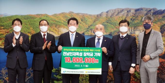 Àü³²µµ °ü°èÀÚ´Â ¡°Äڷγª19·Î Èûµç ½Ã±â¿¡µµ ºÒ±¸Çϰí ÀåÇбÝÀ» ¸Ã±ä Àü³²µµÈ¹°ÀÚµ¿Â÷¿î¼Û»ç¾÷Çùȸ ȸ¿øµé²² °¨»çµå¸°´Ù¡±¸ç ¡°±âŹÇÑ ÀåÇбÝÀº Áö¿ª ÀÎÀç°¡ ²ÞÀ» ÆîÄ¡°í ¼ºÀåÇϵµ·Ï ¼ÒÁßÈ÷ ¾²°Ú´Ù¡±°í ¸»Çß´Ù.