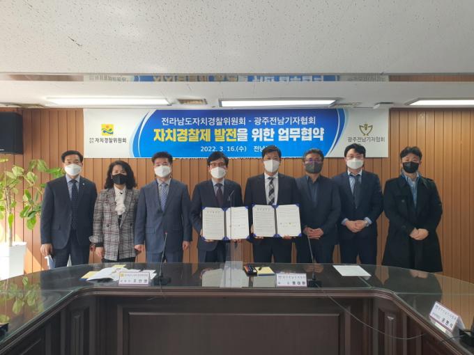 Àü³²µµÀÚÄ¡°æÂûÀ§¿øÈ¸´Â 16ÀÏ Àü³²µµÃ»¿¡¼ ±¤ÁÖÀü³²±âÀÚÇùȸ¿Í ¡®ÀÚÄ¡°æÂûÁ¦ ¹ßÀüÀ» À§ÇÑ ¾÷¹«Çù¾à¡¯(MOU)À» Çß´Ù.