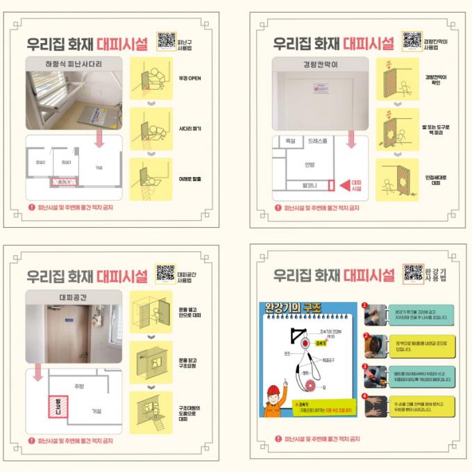 ¶ÇÇÑ 4ÆíÀÇ ¿µ»óÀ» °¢°¢ QRÄÚµåÈÇØ ÀÔÁÖ¹ÎÀÌ ¡®ÇØ´ç ¾ÆÆÄÆ®ÀÇ Çdz¼³ºñ QRÄڵ塯¸¦ ÂïÀ¸¸é À¥ºê¶ó¿ìÀú¸¦ ÅëÇØ »ç¿ë¹ýÀ» ¹Ù·Î º¸µµ·Ï ¼¼´ëº° È«º¸¹°µµ ÇÔ²² Á¦ÀÛÇØ ¹èºÎÇß´Ù.