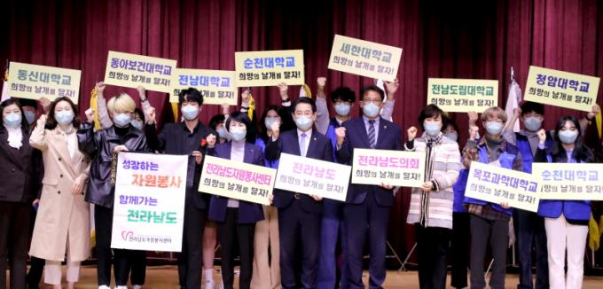 ´ëÇлý ¿¬ÇÕºÀ»ç´Ü¿¡´Â Àü¶ó³²µµ ÀÚ¿øºÀ»ç¼¾ÅÍ¿Í Çù¾àÇÑ 10°÷ÀÌ Âü¿©Çß´Ù. µ¿½Å´ë, µ¿¾Æº¸°Ç´ë, ¸ñÆ÷´ë, ¸ñÆ÷°úÇдë, ¼¼ÇÑ´ë, ¼øÃµ´ë, Àü³²´ë ¿©¼ö Ä·ÆÛ½º, Àü³²µµ¸³´ë, û¾Ï´ë, ÃÊ´ç´ë¿¡¼ ´ëÇк°·Î 30¸í¾¿ ÃÑ 300¸íÀ¸·Î ±¸¼ºÇß´Ù.