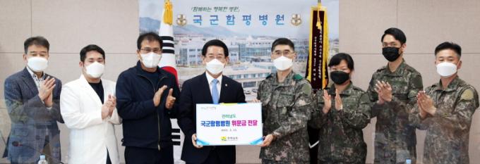 Àü³²µµ´Â ÃÖ±Ù ÅëÇÕ¹æÀ§Å¼¼ È®¸³ À¯°ø ´ëÅë·É ±â°üǥâÀ¸·Î ¹ÞÀº Á¤ºÎÆ÷»ó±ÝÀ» ÅëÇÕ¹æÀ§ ÃëÁö¿¡ ¸Â°Ô ±Ù¹« Áß »ç°í¸¦ ´çÇÑ ±¹±ºÀ庴À» À§·ÎÇϴµ¥ ¾²±â·Î °áÁ¤Çϰí, À̳¯ Àü´ÞÇß´Ù.