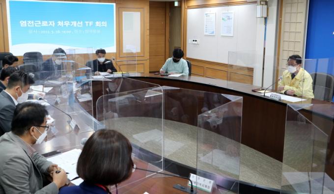 ¡®¿°Àü±Ù·ÎÀÚ Ã³¿ì°³¼± ÃßÁø TF¡¯´Â Àü³²µµ¿Í Àü³²°æÂûû, °í¿ë³ëµ¿ºÎ µîÀ» Áß½ÉÀ¸·Î ´ã´ç ºÎ¼Àå 9¸íÀ» Æ÷ÇÔ, ÇàÁ¤ºÎÁö»ç¸¦ ´ÜÀåÀ¸·Î ÇÑ 1´ÜÀå 3¹Ý ü°è·Î ±¸¼ºµÆ´Ù. 3°³ ¹ÝÀº ÃѰý¹Ý, Á¶»çÁö¿ø¹Ý, ÇöÀåÃßÁø¹ÝÀÌ´Ù.