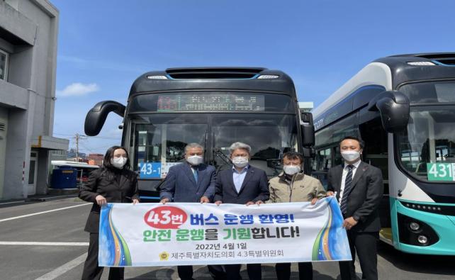 Á¦ÁÖÆ¯º°ÀÚÄ¡µµ´Â ¹ö½º¸¦ ÀÌ¿ëÇØ Á¦ÁÖ4¡¤3ÆòȰø¿øÀ» ¹æ¹®ÇÏ´Â »ç¶÷µéÀÌ ¹ö½º ¹øÈ£¸¦ ÅëÇØ 4¡¤3À» ±â¾ïÇÏ°í ¿ª»çÀû Àǹ̸¦ µÇ»õ±æ ¼ö ÀÖµµ·Ï ±âÁ¸ 343¹ø, 344¹ø ¹ö½ºÀÇ ³ë¼±¹øÈ£¸¦ 43-1¹ø, 43-2¹øÀ¸·Î °¢°¢ º¯°æÇÏ°í ¿îÇàÀ» ½ÃÀÛÇß´Ù.