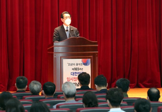 ÇÑÆí, Á¤ºÎ´Â ÀÓ½ÃÁ¤ºÎ ¼ö¸³À» ¼±Æ÷ÇÑ 1919³â 4¿ù 11ÀÏÀ» ±â³äÇØ ÀÓ½ÃÁ¤ºÎÀÇ ¹ýÅëÀ» À̾î¹Þ¾Æ ´ëÇѹα¹ÀÇ Á¤Å뼺À» ±»°ÇÈ÷ ÇÏ°í ¹ÎÁ· ÀÚÁ¸ÀǽÄÀ» È®¸³Çϱâ À§ÇØ ±â³äÀÏÀ» Á¦Á¤Çß´Ù.