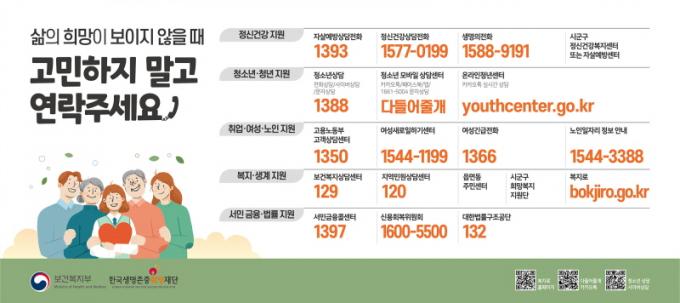 ¼¾ÅÍ´Â ÀÚ»ì ¿¹¹æ »ó´ãÀüÈ(¢Ï1393) È«º¸, Äڷγª19 ½É¸®Áö¿ø ¼ºñ½º Á¦°ø, ÀÚ»ì ¿¹¹æ°ú Àνݳ¼±À» À§ÇÑ »ý¸í »ç¶û ·Î°íÁ§ÅÍ ¿î¿µ(6°³¼Ò ¼³Ä¡), ¹ø°³Åº ÆÇ¸ÅÇàŰ³¼± ½Çõ¾÷¼Ò ¸ð´ÏÅ͸µ, ÀÏ»êÈź¼Ò °¨Áö±â ¼³Ä¡ Áßµ¶¿¹¹æ ¼÷¹Ú¾÷¼Ò ¸ð´ÏÅ͸µ µî ÀÚ»ì ¿¹¹æ°ú Àνݳ¼±À» À§ÇØ Èû¾²°í ÀÖ´Ù.
