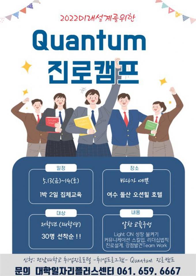 [½Ã»çÁ¾ÇսŹ® = ¿À½ÂÅà ±âÀÚ] Àü³²´ëÇÐÀÏÀÚ¸®Ç÷¯½º¼¾ÅͰ¡ ÇлýµéÀÇ ÀÚ±âÁÖµµÀûÀÎ »îÀ» À§ÇÑ Áø·Î ¼³Á¤°ú Àڱ⼺Àå¿¡ ´ëÇÑ µ¿±âºÎ¿©¸¦ À§ÇØ ¹Ì·¡¼³°è ¡®Quantum Áø·ÎÄ·ÇÁ¡¯¸¦ ÁøÇàÇÑ´Ù.