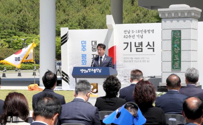 ±â³ä½ÄÀº ¡®¿À¿ù, Áø½ÇÀÇ ÈûÀ¸·Î! ½Ã´ëÀÇ ºûÀ¸·Î!¡¯¸¦ ÁÖÁ¦·Î Àü³²µµÁö»ç ±ÇÇÑ´ëÇà ¹®±ÝÁÖ ÇàÁ¤ºÎÁö»ç, ¹®°æ½Ä Àü³²5‧18¹ÎÁßÇ×Àï 42Áֳ⠱â³äÇà»çÀ§¿øÀå, ±¹È¸ÀÇ¿ø, µµÀÇ¿ø, 5‧18À¯°øÀÚ ¹× À¯Á·, µµ¹Î µî 300¿© ¸íÀÌ Âü¼®ÇÑ °¡¿îµ¥, ¾ö¼÷ÇÏ°í °æ°ÇÇÑ ºÐÀ§±â ¼Ó¿¡¼ ÁøÇàµÆ´Ù.