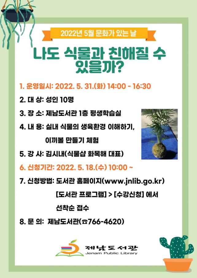 [½Ã»çÁ¾ÇսŹ® = °í¼º¹Î ±âÀÚ] Á¦³²µµ¼°ü(°üÀå ȲÁ¤½Ä)Àº Áö¿ªÁֹο¡°Ô ÀÏ»ó ¼Ó¿¡¼ ÀÚ¿¬½º·´°Ô ¹®È¸¦ ÇâÀ¯ÇÒ ¼ö ÀÖ´Â ±âȸ¸¦ Á¦°øÇϰíÀÚ¡®2022³â 5¿ù ¹®È°¡ ÀÖ´Â ³¯ – ³ªµµ ½Ä¹°°ú Ä£ÇØÁú ¼ö ÀÖÀ»±î?¡¯ÇÁ·Î±×·¥ÀÇ Âü°¡ÀÚ¸¦ ¸ðÁýÇÑ´Ù.