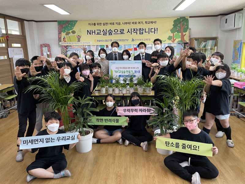 Áö±¸»ì¸®±â ½ÇõÇб³ 2³âÂ÷ ¿î¿µ ÁßÀÎ ÀüÁÖÈ»êÃʵîÇб³¸¦ ¡ºNH±³½Ç½£¡»Á¦1È£·Î ¼±Á¤ÇÏ¿© 5,6Çгâ 12°³ Çб޿¡ ź¼Ò Àú°¨ ¹× °ø±âÁ¤È¿¡ È¿°úÀûÀÎ ¸êÁ¾À§±â½Ä¹° 300±×·ç¸¦ Á¶¼ºÇß´Ù.