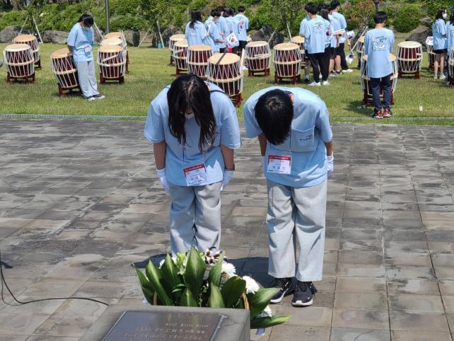 ƯÈ÷, 5¿ù 18ÀÏ(¼ö), Á¦ÁÖ4¡¤3ÆòȰø¿ø ³» Çà¹æºÒ¸íÀÎÇ¥¼® ¾Õ¿¡¼´Â Èñ»ýÀÚµéÀ» ±â¸®°í ±× ¾ÆÇÄÀ» À§·ÎÇϱâ À§ÇÑ ÁøÈ¥°îÀÌ ¿ï·Á ÆÛÁ³´Ù. ÀÌ °îÀº Àü³² ¼ÒÀç ÁßÇб³ 3Çгâ Çлý 30¿© ¸íÀÌ ÁغñÇÑ ¸ðµÒºÏ Ÿ¾Ç°îÀ¸·Î Á¦ÁÖ4¡¤3ÆòȰø¿øÀ» ãÀº »ç¶÷µé°ú ÇÔ²² 4¿ùÀÇ ±â¾ïÀ» ³ª´³´Ù. ¹ÎÁ· ÀüÅë ¾Ç±âÀÎ ¸ðµÒºÏÀÇ ±í°í ÁøÇÑ ¿ï¸²ÀÌ Èñ»ýÀڵ鿡°Ô ¿ÂÀüÈ÷ ÀüÇØÁö±â¸¦ ¹Ù¶ó¸ç ÇлýµéÀº Á¤¼ºÀ» ´ÙÇØ ¿¬ÁÖÇß´Ù.