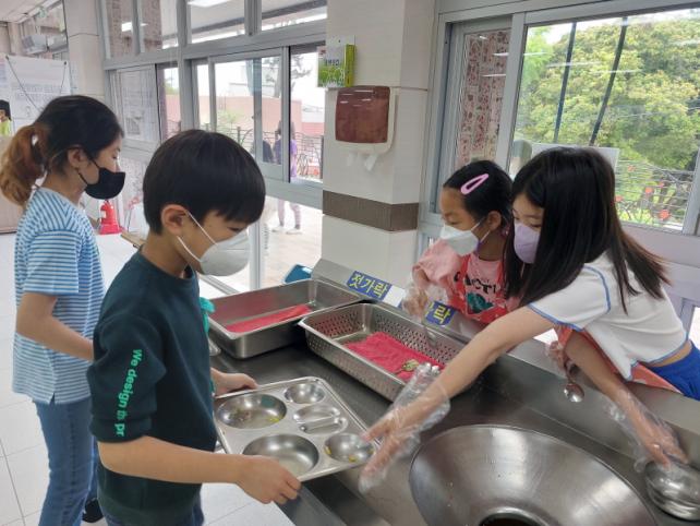 [½Ã»çÁ¾ÇսŹ® = °í¼º¹Î ±âÀÚ] À§¹ÌÃʵîÇб³(±³Àå ±è´ë¹Î)´Â ±Þ½Ä ½Ã°£¿¡ Çлý ±Þ½Ä ºÀ»çȰµ¿ µ¿¾Æ¸®ÀΡ®½Ä»ýȰ¹Ù¸¥½Çõ ºÀ»ç´Ü¡¯À» ¿î¿µÇϰí ÀÖ´Ù. Èñ¸Á ½Åû ÇлýÀ» 2ÀÎ 1Á¶·Î ±¸¼ºÇÏ¿© ±Þ½Ä ½Ã°£¿¡ Çлý ÀÜ¹Ý Ã³¸® ½Ã ±ú²ýÇÏ°Ô ¹ö¸®±â, Áú¼ Áöµµ ¹× ½Ä±â±¸ Á¤¸® Áöµµ µîÀÇ ºÀ»çȰµ¿À» Çϰí ÀÖ´Ù.