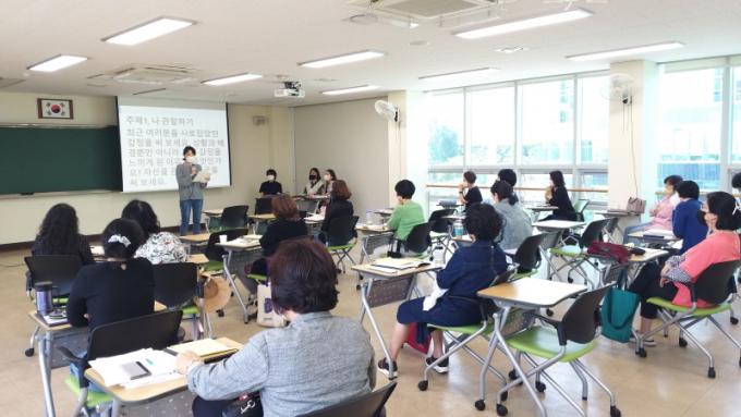 ±¤ÁÖ±³À°¿¬¼ö¿ø ¾ç¼÷ÀÚ ¿øÀåÀº ¡±Àç´ÉÀÌ ÀÖ¾î¾ß¸¸ ±ÛÀ» Àß ¾µ ¼ö ÀÖ´Ù´Â Æí°ßÀ» ¾ø¾Ö°í, ±ÛÀº ´©±¸³ª Àß ¾µ ¼ö ÀÖ´Ù´Â ÀڽۨÀ» ½É¾îÁÖ±â À§ÇØ ¸¶·ÃÇÑ À̹ø ¿¬¼ö¿¡ ¿Á¤ÀûÀ¸·Î Âü¿©ÇÑ ±³¿øµéÀÇ ¸ð½À¿¡ °¨µ¿À» ´À²¼´Ù¡±¸ç ¡°¾ÕÀ¸·Îµµ ±³¿øÀÇ Àڱ⠹߰߰ú ¼ºÀåÀ» µµ¿ï ¼ö ÀÖ´Â ±Û¾²±â ¿ª·® ½ÅÀå ¿¬¼ö °úÁ¤À» ²ÙÁØÈ÷ °³¼³Çϰڴ١±°í ¹àÇû´Ù.