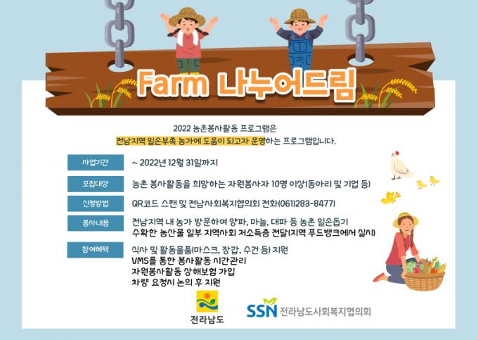 ÀÚ¿øºÀ»ç¸¦ ÅëÇØ Áö¿ø¹ÞÀº ³ó°¡°¡ Áö¿ø¸¸ ¹ÞÀº °ÍÀÌ ¾Æ´Ï¶ó ¼öÈ®ÇÑ ³ó»ê¹°·Î Áö¿ª Ãë¾à°èÃþÀ» µ½´Â ¼±¼øÈ¯ »ç¾÷ÀÎ ¼ÀÀÌ´Ù. ³óµµÀÌ¸é¼ Ãë¾à°èÃþÀÌ ¸¹Àº Àü³²Áö¿ª¿¡ °¡Àå ÀûÇÕÇÑ ³ª´®°ú »ó»ýÀÇ ¸ðµ¨·Î ²ÅÈù´Ù. ¿ÃÇØ´Â ³ó¹ø±â Àη ¼ö¿ä°¡ ±ÞÁõÇÏ´Â 6¿ùºÎÅÍ 10¿ù±îÁö ÁýÁß ¿î¿µÇÒ °èȹÀÌ´Ù.½Åû ÀÚ°ÝÀº ³óÃÌ ºÀ»çȰµ¿À» Èñ¸ÁÇÏ´Â ÀÚ¿øºÀ»çÀÚ 10¸í ÀÌ»óÀÎ ´ëÇÐ µ¿¾Æ¸®³ª ±â¾÷ µîÀÌ´Ù.