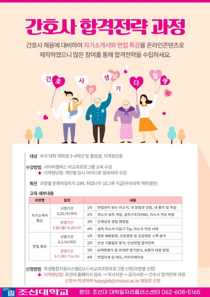 Á¶¼±´ëÇб³ À±¿À³² ´ëÇÐÀÏÀÚ¸®Ç÷¯½º¼¾ÅÍÀåÀº ¡°°£È£»ç ÇÕ°ÝÀü·« °úÁ¤ ¿î¿µÀ» ÅëÇØ ÇлýµéÀÇ Ãë¾÷¿ª·®À» °ÈÇϰíÀÚ ÇÑ´Ù¡±¸ç ¡°Áö¿ª ³» °£È£»ç ÇÕ°Ý·üÀ» ³ôÀ̰í, º¸°Ç¡¤ÀÇ·áÁ÷ ¹Ì½º¸ÅĪÀ» ÇØ¼ÒÇϰíÀÚ °ÅÁ¡Çü ƯȻç¾÷À¸·Î ¿î¿µÇÒ °èȹÀÌ´Ù¡±°í ¸»Çß´Ù.