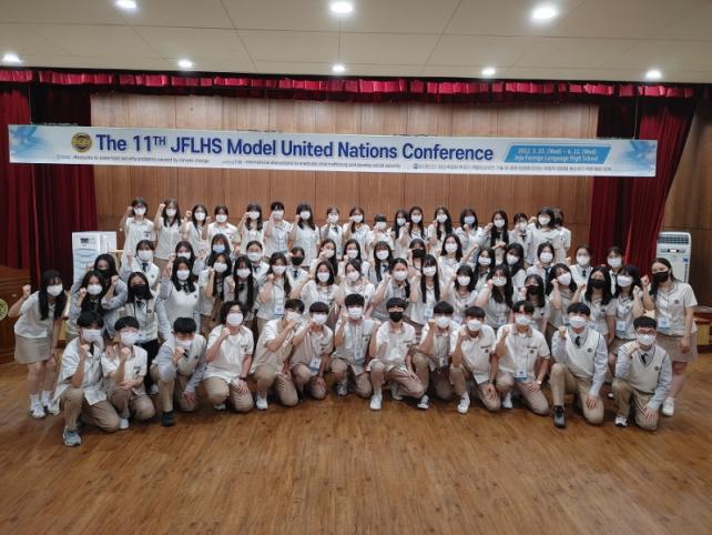 2012³â¿¡ °³¼³µÇ¾î ÇöÀç±îÁö 11ȸ¸¦ ¸Â°í ÀÖ´Â Á¦ÁÖ¿Ü°í ¸ðÀÇ ±¹Á¦ ȸÀÇ¡®JFMUN¡¯Àº ÇлýµéÀÌ ÀÚ¹ßÀûÀ¸·Î »ç¹«±¹À» °á¼ºÇÏ¿© °¡»ó UN ȸÀǸ¦ Á÷Á¢ ±âȹÇϰí ÁøÇàÇÑ´Ù. ÃÑ 68¸íÀÇ ÇлýµéÀÌ Âü¿©ÇÑ À̹ø ¸ðÀÇ UNÀÇ À§¿øÈ¸´Â ÃÑ 3°³(¿µ¾î2, Çѱ¹¾î1)·Î ´ÙÀ½°ú °°Àº ±¹Á¦Àû À̽´¿¡ ´ëÇØ ÅäÀǸ¦ ÁøÇàÇß´Ù. FAO¿Í UNICEF´Â UN ȸÀÇ ÀýÂ÷ÀΡ®ÀÇ»çÁøÇà±ÔÄ¢(Rules of Procedure¡¯µî ¸ðµç ȸÀÇ °úÁ¤ÀÌ ¿µ¾î·Î ÁøÇàµÇ¾î °Ý½Ä ÀÖ´Â ¿µ¾î ±¸»ç ´É·ÂÀ» Çâ»ó½Ãų ¼ö ÀÖ´Â ¿µ¾î ¸ôÀÔ È¯°æÀ» Á¶¼ºÇß´Ù.