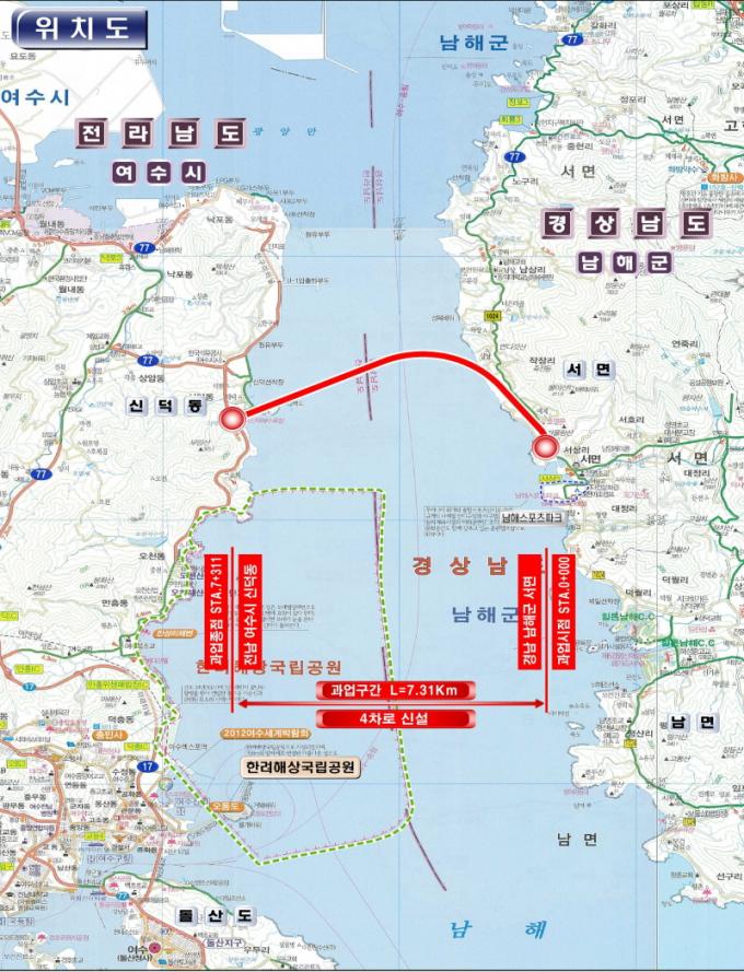¶ÇÇÑ ¿©¼ö~³²ÇØ ÇØÀúÅͳÎÀº ¿µÈ£³² ÈÇÕ Ãø¸é¿¡¼ Àü±¹ÀûÀ¸·Î °ü½ÉÀÌ Å« »ç¾÷ Áß Çϳª´Ù. 1998³â ³²ÇؾȰü±¤º§Æ® ¡®ÇÑ·Á´ë±³¡¯ °Ç¼³°èȹÀ¸·Î ù°ÉÀ½À» ¶ÃÀ¸³ª °æÁ¦¼ºÀÌ ³·´Ù´Â ÀÌÀ¯·Î ¿¹ºñŸ´ç¼ºÁ¶»ç¿¡¼ ¿©·¯ Â÷·Ê °í¹è¸¦ ¸¶½Ã´Ù ¸¶Ä§³» ¹Ý¿µµÆ´Ù. ¿Ï°øµÇ¸é Àü³² ¿©¼ö¿Í °æ³² ³²Çذ¡ 10ºÐ ³»¿Ü Á÷¼± ´Ü°Å¸®·Î ¿¬°áµÅ °øµ¿»ýȰ±ÇÀÌ °¡´ÉÇØÁ® Áö¿ª ¹ßÀü¿¡ Å« µµ¿òÀÌ µÉ Àü¸ÁÀÌ´Ù.