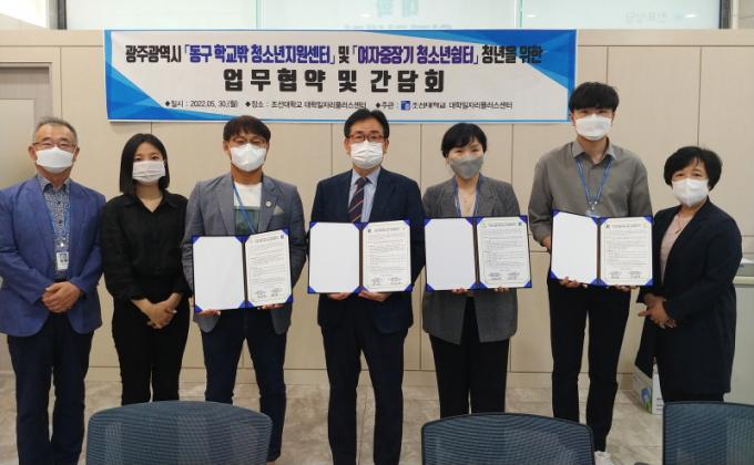 Áö³ 30ÀÏ Á¶¼±´ëÇб³ ´ëÇÐÀÏÀÚ¸®¼¾ÅÍÇ÷¯½º¼¾ÅÍ¿¡¼ ü°áµÈ Çù¾à½Ä¿¡´Â Á¶¼±´ëÇб³ ´ëÇÐÀÏÀÚ¸®Ç÷¯½º¼¾ÅÍ À±¿À³² ¼¾ÅÍÀåÀ» ºñ·ÔÇØ ±¤ÁÖ±¤¿ª½Ã µ¿±¸Çб³¹Ûû¼Ò³âÁö¿ø¼¾ÅÍ ´ã´çÀÚ, ±¤ÁÖ±¤¿ª½Ã ÁßÀå±â¿©ÀÚû¼Ò³â½°ÅÍ ´ã´çÀÚ°¡ Âü¼®ÇßÀ¸¸ç ÃÑ 10¿© ¸íÀÇ °ü°èÀÚµéÀÌ Âü¼®ÇÑ °¡¿îµ¥ ÁøÇàµÆ´Ù.