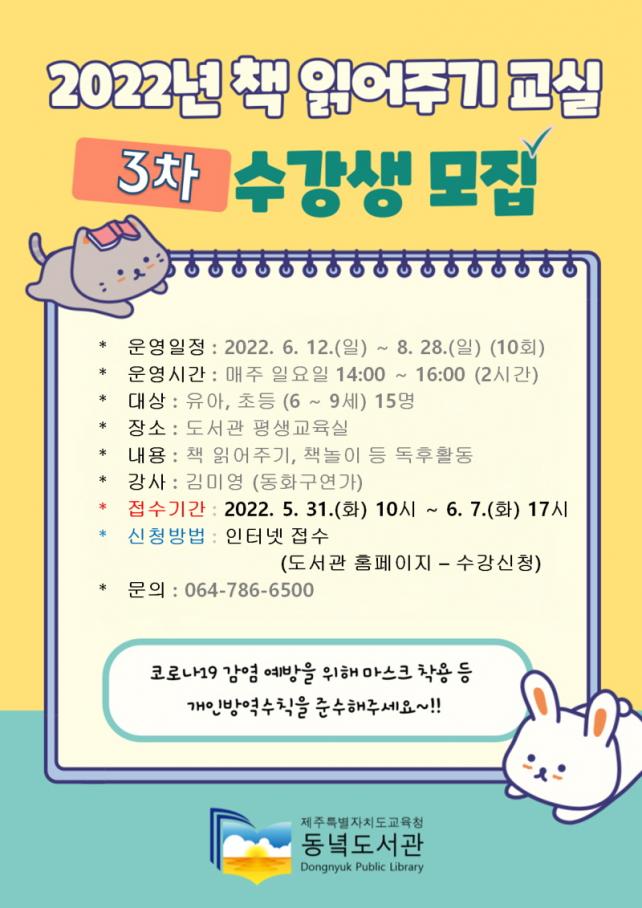 Ã¥ ÀоîÁֱ⠱³½ÇÀº Âü°¡ ¾î¸°À̵é·Î ÇÏ¿©±Ý µ¶¼ÀÇ Áñ°Å¿òÀ» ±ú´Ýµµ·Ï ÇÏ°í µµ¼°ü ÀÌ¿ë »ýȰȸ¦ À¯µµÇϰíÀÚ ¿î¿µÇÏ´Â ÇÁ·Î±×·¥ÀÌ´Ù. 3Â÷´Â 6¿ù 12ÀÏ(ÀÏ)ºÎÅÍ 8¿ù 28ÀÏ(ÀÏ)±îÁö ¸ÅÁÖ ÀÏ¿äÀÏ(14½Ã~16½Ã) ÃÑ 10ȸ °úÁ¤À¸·Î ±è¹Ì¿µ(µ¿È±¸¿¬°¡) °»çÀÇ Áöµµ·Î ¿î¿µµÇ¸ç, Ã¥ ÀоîÁÖ±â ¹× Ã¥ ³îÀÌ µî °ü·Ã µ¶ÈÄȰµ¿À¸·Î ÁøÇàµÈ´Ù.