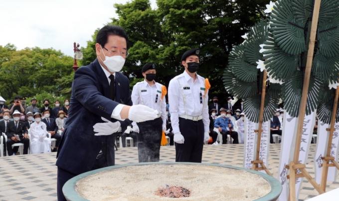 ±è Áö»ç´Â Ãß³ä»ç¸¦ ÅëÇØ ¡°Àü³²µµ´Â ¾Ö±¹¼±¿°ú È£±¹¿µ·ÉÀÇ Èñ»ý°ú Çå½ÅÀ» ±â¾ïÇÏ°í ±× ¼þ°íÇÑ Á¤½ÅÀÌ ÈÄ´ë¿¡ À̾îÁöµµ·Ï Çϰڴ١±¸ç ¡°±¹°¡ À¯°øÀÚ¿Í º¸ÈÆ °¡Á·À» ÃÖ´ëÇÑ ¿¹¿ìÇØ ±àÁö¸¦ °®°í »ìµµ·Ï Èû¾²°Ú´Ù¡±°í ¸»Çß´Ù.