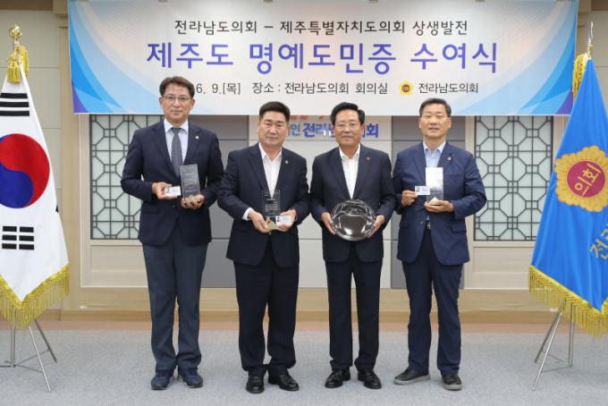 ±è¼ºÀÏ Àü¶ó³²µµÀÇȸ ÀÇÀå Á÷¹«´ë¸®¿Í Àü¶ó³²µµÀÇȸ ÀÇ¿øµéÀº Á¦ÁÖ 4¡¤3ÀÇ ¿ÏÀüÇÑ ÇØ°áÀ» À§ÇÑ 4¡¤3Ưº°¹ý °³Á¤°ú 4¡¤3 Àü±¹È¿¡ ±â¿©Çß°í ÀϺ» ÈÄÄí½Ã¸¶ ¿øÀü ¹æ»ç´É ¿À¿°¼ö ÇØ¾ç ¹æÃâ °áÁ¤À» °·ÂÈ÷ ±Ôź, öȸ Ã˱¸¸¦ ÇÏ´Â µî Á¦ÁÖÁö¿ª Çö¾È ÇØ°áÀ» À§ÇÑ ³ë·ÂÀ» ÀÎÁ¤¹Þ¾Æ, Á¦ÁÖµµ ¸í¿¹µµ¹ÎÁõ ¼ö¿©´ë»óÀÚ·Î ¼±Á¤µÆ´Ù.