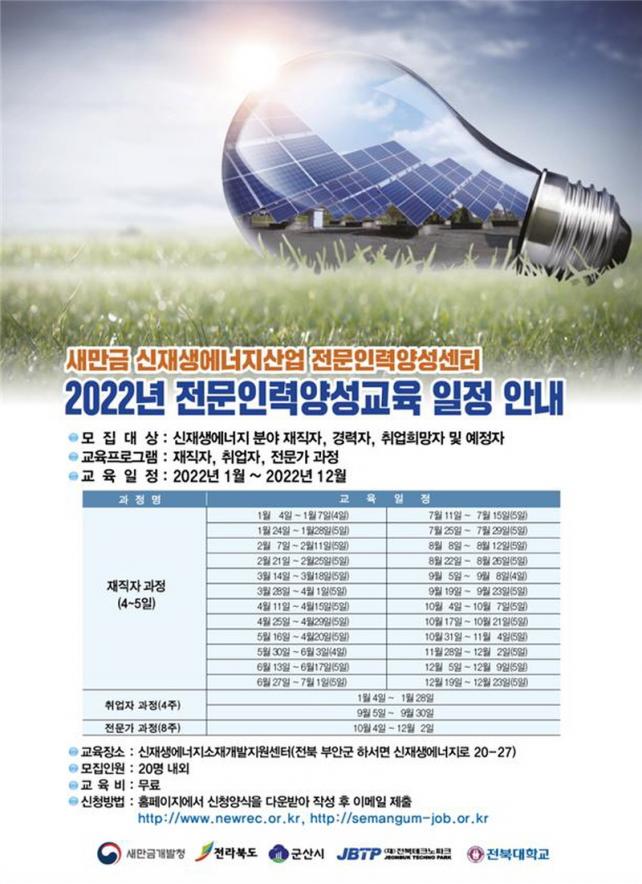 ±³À°¿¡ °üÇÑ Âü¿© ¹®ÀÇ µî ÀÚ¼¼ÇÑ »çÇ×Àº »õ¸¸±Ý ½ÅÀç»ý¿¡³ÊÁö»ê¾÷ Àü¹®Àη¾缺¼¾ÅÍ È¨ÆäÀÌÁö(http://saemangum-job.or.kr)¹× ½ÅÀç»ý¿¡³ÊÁö¼ÒÀç°³¹ßÁö¿ø¼¾ÅÍ(063-580-1522)·Î ¹®ÀÇÇÏ¸é µÈ´Ù.