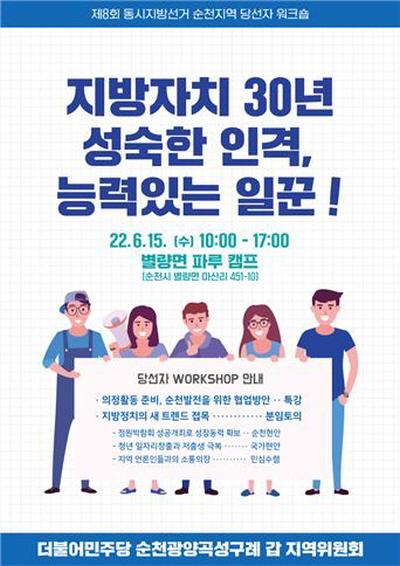 ¿À´Â 15ÀÏ ¼ö¿äÀÏ ¿ÀÀü 10½ÃºÎÅÍ 'ÆÄ·ç Ä·ÇÁ½Ã¼³(¼øÃµ½Ã º°·®¸é ¸¶»ê¸® 451-10)¡¯¿¡¼ ½Ç½ÃµÇ´Â ´ç¼±ÀÚ ¿öÅ©¼ó¿¡¼´Â ¡°Áö¹æÀÚÄ¡ 30³â ¼º¼÷ÇÑ ÀΰÝ, ´É·ÂÀÖ´Â ÀϲÛ!¡±À̶ó´Â ÁÖÁ¦·Î ¹ÎÁÖ´ç Çõ½Å ¹æ¾È°ú À¯´ÉÇÑ Áö¹æÀÚÄ¡ ½ÇÇöÀ» À§ÇÑ ³íÀǰ¡ ÁøÇàµÈ´Ù.
