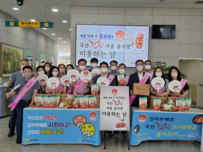 ¼Ò¿µÈ£ Àü³²µµ ³óÃà»ê½Äǰ±¹ÀåÀº ¡°±¹»ê±èÄ¡ ¼ÒºñÃËÁø Ȱ¼ºÈ ´ëÃ¥ ÃßÁøÀ» ÅëÇØ ±èÄ¡ÀÇ º»°íÀåÀÎ Àü³²»ê ±èÄ¡ÀÇ ¿ì¼ö¼ºÀ» ¾Ë¸®°í ÆÇ¸Å¸¦ È®´ëÇÒ °Í¡±À̶ó¸ç ¡°¸ðµç µµ¹ÎÀÌ ±èÄ¡ ¹Ù·Î ¾Ë°í ¸Ô±â, ±¹»ê±èÄ¡ »ç¿ë À½½ÄÁ¡ ÀÌ¿ëÇÏ±â µî ±èÄ¡ ¼ÒºñÃËÁø ¿îµ¿¿¡ µ¿ÂüÇÏ±æ ¹Ù¶õ´Ù¡±°í ´çºÎÇß´Ù.
