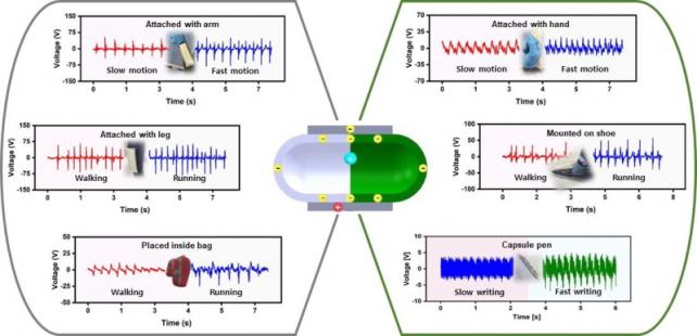 ÀÌ ¿¬±¸´Â ÀÓÀÇÀÇ ¹æÇâ¿¡¼ ÀÛÀº Èû¿¡¼µµ ½±°Ô ¸Å¿ì ÀÛÀº ÀÔÀÚµéÀÌ ¿òÁ÷À̱⠶§¹®¿¡ ¸ðµç ¹æÇâ¿¡¼ Àü±â ¿¡³ÊÁö¸¦ »ý»êÇÒ ¼ö ÀÖ´Ù´Â °ÍÀÌ´Ù. Á¦ÀÛµÈ ¸¶ÂûÀü±â ³ª³ë¹ßÀü¼ÒÀÚ´Â 1°³ÀÇ Ä¸½¶¼ÒÀÚ°¡ 5.488 mWÀÇ Àü±â¸¦ »ý»êÇϰí, 16°³ÀÇ Ä¸½¶À» º´·Ä·Î ¿¬°áÇßÀ» ¶§ 70 mWÀÇ Àü±â¸¦ »ý»êÇÑ´Ù. ƯÈ÷ ¿¡³ÊÁö È¿À²Àº ÃÖ´ë 74.35%·Î ¸Å¿ì ¿ì¼öÇÏ´Ù.