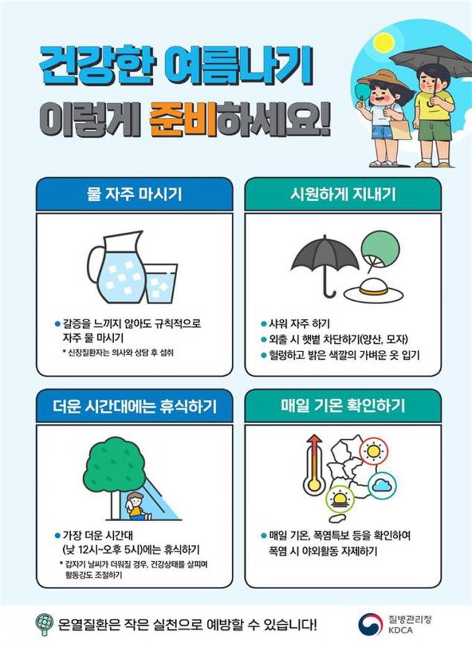 °í·ÉÀÚ ¹× µ¶°Å³ëÀÎ, ¾ß¿Ü±Ù·ÎÀÚ, ¸¸¼ºÁúȯÀÚ(°íÇ÷¾Ð¡¤½ÉÀ庴¡¤´ç´¢¡¤³úÁ¹Áß µî), ¾î¸°ÀÌ´Â ¿Â¿ÁúȯÀ» ´õ¿í Á¶½ÉÇØ¾ß ÇÑ´Ù. Æø¿°´ëºñ °Ç°¼öÄ¢Àº ¡ã¹° ÀÚÁÖ ¸¶½Ã±â ¡ã½Ã¿øÇÏ°Ô Áö³»±â ¡ã´õ¿î ½Ã°£´ë(12½Ã~17½Ã)¿¡´Â ÈÞ½ÄÇϱ⠡ã¸ÅÀÏ ±â¿Â È®ÀÎÇϱâÀÌ´Ù. ÇÑÆí, Àü¶óºÏµµ °ü°èÀÚ´Â ¡°º»°ÝÀûÀÎ Æø¿°ÀÌ ½ÃÀÛµÇ¸é ¿Â¿ÁúȯÀÌ Áõ°¡ÇÒ °ÍÀ¸·Î ¿¹»óµÇ´Ï ¿Â¿Áúȯ ¿¹¹æÀ» À§ÇØ °Ç°¼öÄ¢À» Àß ½Çõ ÇØÁÖ½Ç °ÍÀ» ´çºÎµå¸°´Ù¡±°í ¸»Çß´Ù.