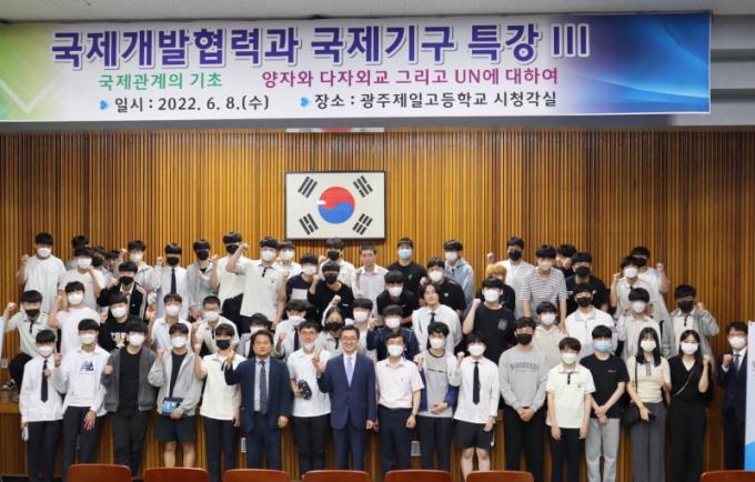 À̳¯ Ư°¿¡¼ À±¿©Ã¶ ±¤ÁÖ±¤¿ª½Ã ±¹Á¦°ü°è´ë»ç´Â ¡®±¹Á¦°ü°èÀÇ ±âÃÊ, ¾çÀÚ¿Í ´ÙÀڿܱ³ ±×¸®°í UN¿¡ ´ëÇÏ¿©¡¯¶õ ÁÖÁ¦ °¿¬À» ÅëÇØ, ¾çÀÚ ¿Ü±³ÀÇ ½ÃÀÛ¿¡ ´ëÇÑ ¿ª»çÀû ¹è°æÀ» ÇлýµéÀÌ ½±°Ô ÀÌÇØÇÒ ¼ö ÀÖµµ·Ï Àü´ÞÇØ ÁÖ°í, ±âÈĺ¯È, UNÀÇ Áö¼Ó°¡´ÉÇÑ °³¹ß¸ñÇ¥(SDGs), ±¹Á¦ ºÐÀï ¹× ÀüÀï¿¡¼ UNÀÇ ¿ªÇÒÀÌ Áß¿äÇØÁö´Âµ¥ µû¸¥ ´ÙÀڿܱ³ÀÇ Á߿伺µµ °Á¶Çß´Ù.
